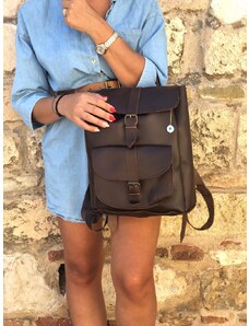 Καφέ Σκούρα Δερμάτινη Backpack XL Τρίτσεπη Χειροποίητη | Christina Christi