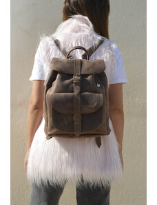 Καφέ Δερμάτινο Roll Top Backpack XL Χειροποίητο από Γνήσιο Ελληνικό Δέρμα | Christina Christi