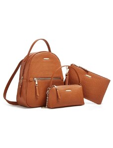 Γυναικείο σετ Σακίδιο πλάτης/τσάντα χιαστί/τσάντα χειρός Cardinal ZM906 καφέ