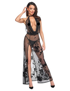 Noir - διαφανές, λουλουδάτο, μακρύ φόρεμα (μαύρο)