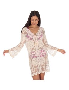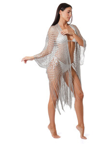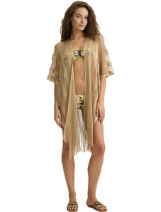 Silia D Bronze Midi Καφτάνι με Μεταλλική Πλέξη και Κρόσσια