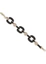 Υπέροχο γυναικείο βραχιόλι της ιταλικής εταιρείας Sovrani με κωδικό ονομασίας, J10850. Κατασκευασμένο από ανοξείδωτο ατσάλι σε χρυσό χρώμα μήκους 21 εκατοστών, διακοσμημένο με λευκό σμάλτο και μαύρες λεπτομέρειες με σχήμα αλυσίδα.