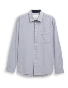 TOM TAILOR DENIM Πουκάμισο ναυτικό μπλε / γκριζομπέζ / λευκό