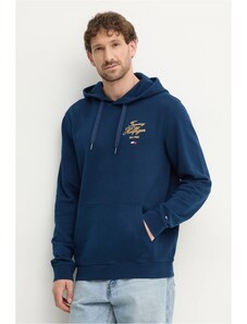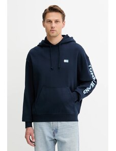 Βαμβακερή μπλούζα Tommy Jeans χρώμα: ναυτικό μπλε, με κουκούλα, DM0DM21623