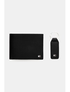 Δερμάτινο πορτοφόλι + μπρελόκ Tommy Hilfiger ανδρικo, χρώμα: μαύρο