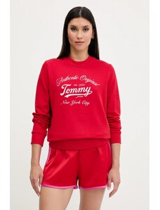 Βαμβακερή μπλούζα Tommy Jeans γυναικεία, χρώμα: κόκκινο, DW0DW20942