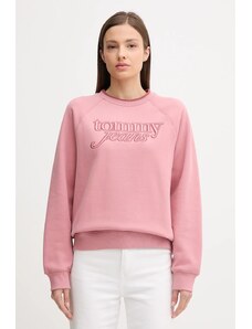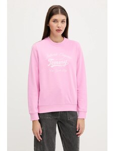 Βαμβακερή μπλούζα Tommy Jeans γυναικεία, χρώμα: ροζ, DW0DW20942