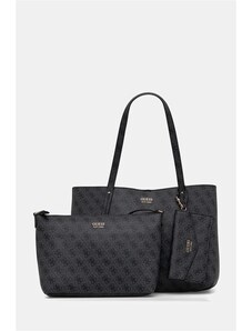 Guess Γυναικεία Τσάντα Ώμου Noelle II Top Zip HWOS9672180-Coal Logo Μαύρο