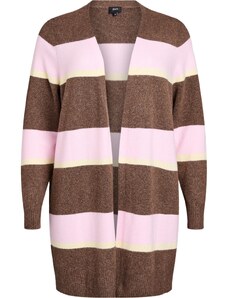 Zizzi Πλεκτή ζακέτα 'Casunny' καφέ κάστανου / ανοικτό κίτρινο / πούδρα