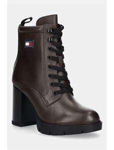 Δερμάτινες μπότες Tommy Jeans TJW HEEL LACE UP BOOT