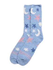 Ysabel Mora Γυναικείες Αντιολισθητικές Κάλτσες Fleece με Αστέρια και Φεγγάρια, Χρώμα: Γαλάζιο