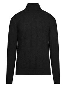 Prince Oliver Πουλόβερ Ζιβάγκο Μαύρο με Cable- Knit Πλέξη in Cotton (Modern Fit)