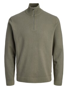 Prince Oliver Premium Zip-Neck Πλεκτή Μπλούζα Λαδί Modern Fit
